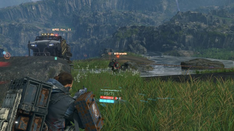 بشكل عام ، لقد انبهرت بالمشي في Death Stranding … حتى قمت بربطتي الأولى للأونلاين وتحول العالم الجميل من حولي إلى مدينة ملاهي تشغلها علامات ثلاثية الأبعاد وعلامات طويلة القامة وعلامات بول في كل مكان. لقد حاولت الدخول في وضع عدم الاتصال ولكن للأسف تم تخزين بالفعل واضطررت إلى حذفها واحداً تلو الآخر (يمكن حذف السلالم والحبال فقط إذا كنت تقف بجوارها مباشرةً بينما يمكن حذف الهياكل الكبيرة مثل الجسور والمشاركات من خريطتك). كان بإمكاني الاستمرار في لعب اللعبة في وضع عدم الاتصال ، ولكني أردت تجربة رؤية كوجيما نظرًا لأن العديد من عناصر اللعبة كانت للأونلاين مثل بناء الطرق ، وتقديم شحنات ضائعة للاعبين الآخرين وتبادل الإعجابات التي عززت مستوى سام (ليس الطريقة الوحيدة ولكن يمكن أن تكون مفيد جدا). أصبح جمال العالم محجوبًا سريعًا من خلال مقدار التكامل عبر الإنترنت ومسح بسيط للمنطقة يملأ الشاشة بالكثير من المعلومات.